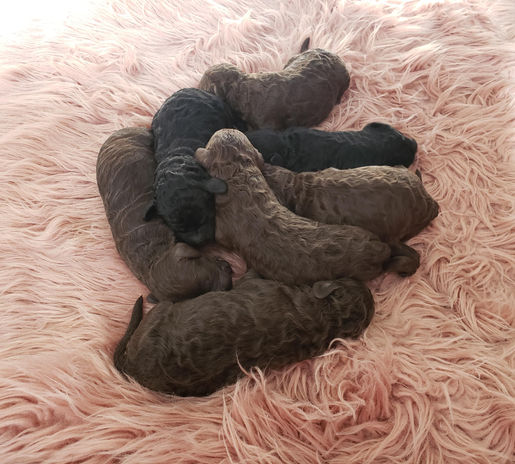 Je ressemble de plus en plus à un vrai chiot, avec des dents, des orteils, des ongles et des moustaches. Mes organes sont déjà complets et j'ai ma couleur de peau. Maman trouve cela un peu difficile, car elle est devenue beaucoup plus lourde et nous sommes très actifs ici dans notre petite piscine. Le plus excitant, c'est que nous devenons maintenant un garçon ou une fille. J'ai eu la chance d'avoir une bonne place dans l'utérus. Comme je suis proche de l'approvisionnement en sang, d'où vient la plupart de la nourriture, je suis maintenant le plus fort du groupe. Après six semaines, je pèse environ 6 grammes et je mesure 45 mm.